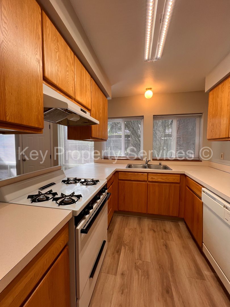 This 2-bedroom, 1-bathroom townhome is conveniently located close to restaurants, freeway access, and more! Newer LVP flooring, washer/dryer hookups in the unit, and located in a small community. There is ample storage space throughout the apartment, and a semi-private front patio with a fenced backyard and storage shed. Landscaping for the front yard is included, and the tenant maintains the backyard.