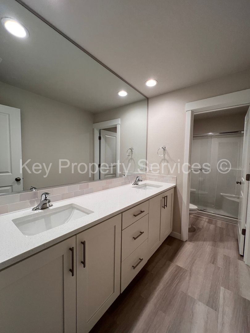 Quality built, newer development in Ramble Creek, 3 bedroom, 2.5 bath townhome, which features many beautiful upgrades within 1,678 sqft of living space. An open floor plan on the main level with tall ceilings, waterproof laminate flooring, a breakfast bar, shaker-style cabinets, quartz counters with tile backsplash, and all stainless steel appliances included! A large walk-in pantry, cozy dining nook, and half bathroom complete the main floor. Upstairs, you will find a spacious loft area/tech niche and laundry room with washer/dryer hookups. The primary suite has vaulted ceilings, a large window for natural light (east-facing for those beautiful sunrises!), and a generous walk-in closet. The en-suite bathroom has double sinks, quartz counters, a subway tile backsplash, and luxury vinyl tile flooring, as well as a walk-in shower. Across the loft space are two bedrooms, both with walk-in closets, and another full bathroom, also with quartz counters, a tile backsplash, and luxury vinyl tile flooring. There is a fenced front yard with grass (landscaping included!) for outdoor enjoyment and a two-car attached garage (alley access) with a 220 EV Plug. HOA rules apply. Heat Pump Forced Air/AC. Battle Ground School District (see District website to confirm).